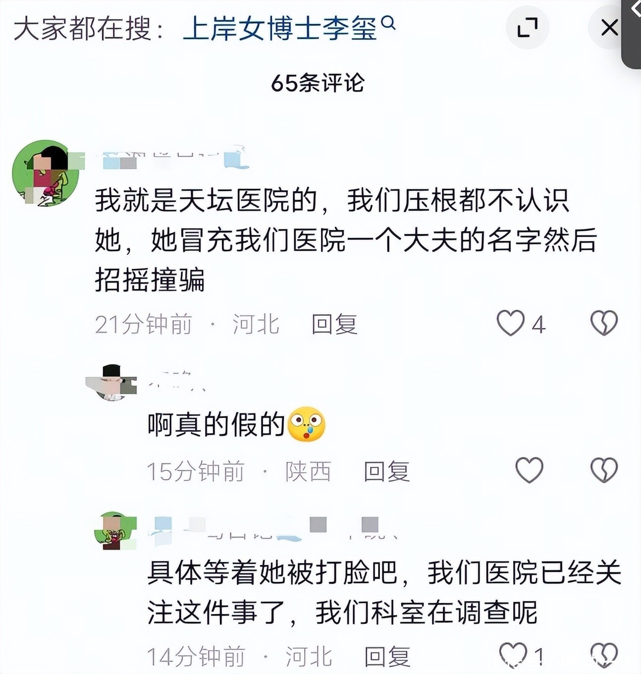 紧随其后,北京天坛医院官方回应坐实质疑:经内部系统全面检索,该院在职及历史聘用人员中,均无此人登记信息。